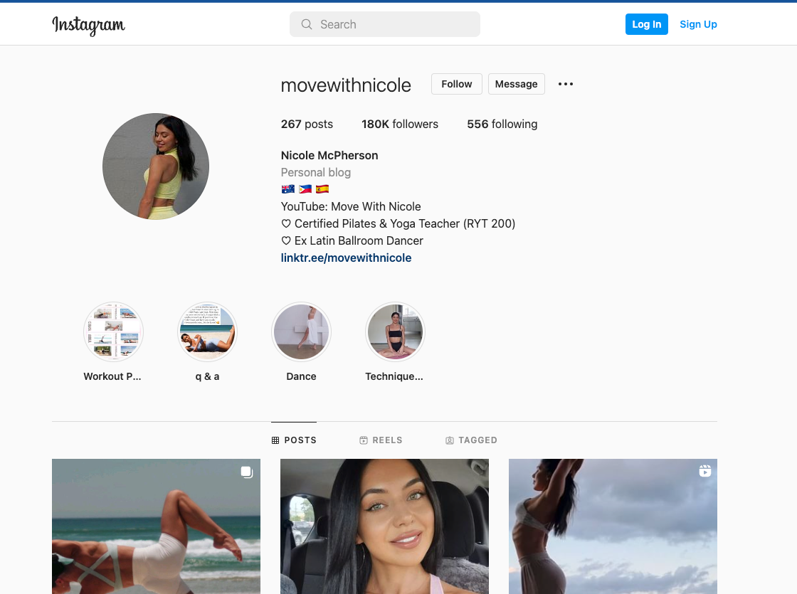 Move With Nicole is the Instagram page of Nicole Thomsen—a former dancer turned fitness instructor who helps her followers find a balance between work life and physical activity by posting short but effective pilates, yoga, HIIT workouts and more.